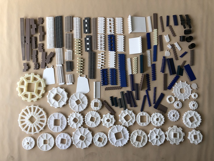 38.1節距:4802網帶、936突點、880轉彎鏈板、882轉彎鏈板、820直行鏈板、螺旋鏈板、